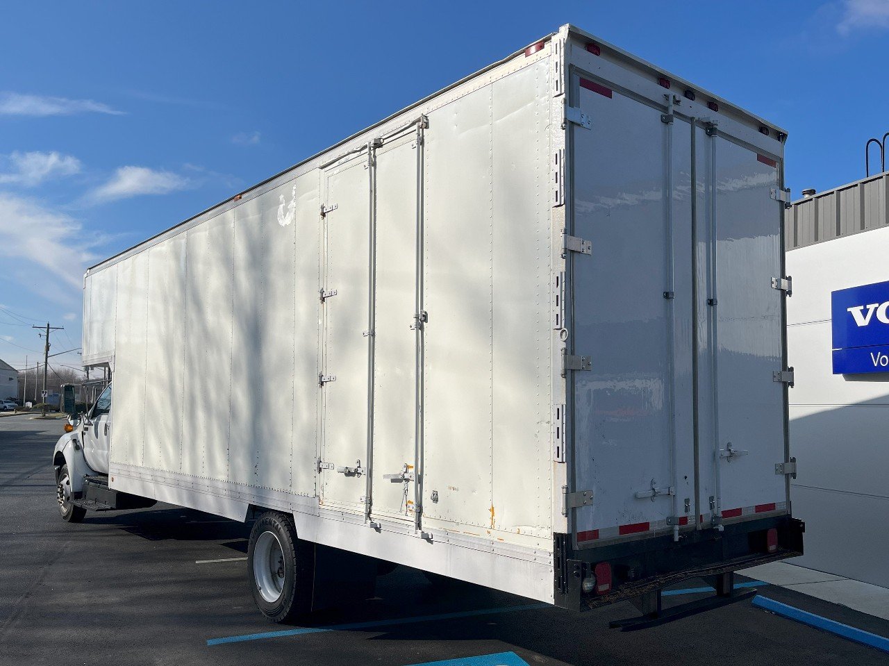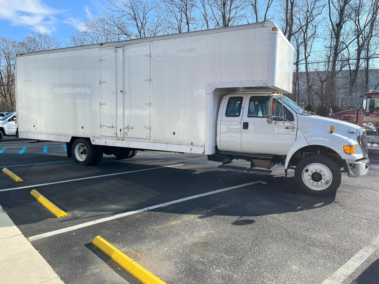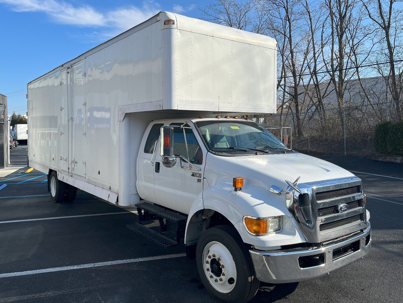 2013 FORD F650 XL SD, FORD V10 GASOLINE ENGINE, 26 FOOT VAN BODY WITH ATTIC, JUST UNDER 80K MILES, SWING DOORS – REAR – CURB SIDE – STREET SIDE, PLYWOOD LINED, NO CDL REQUIRED, EXTENDED CAB, REAR SEAT, AIR CONDITIONING, CRUISE CONTROL, AND MORE………….