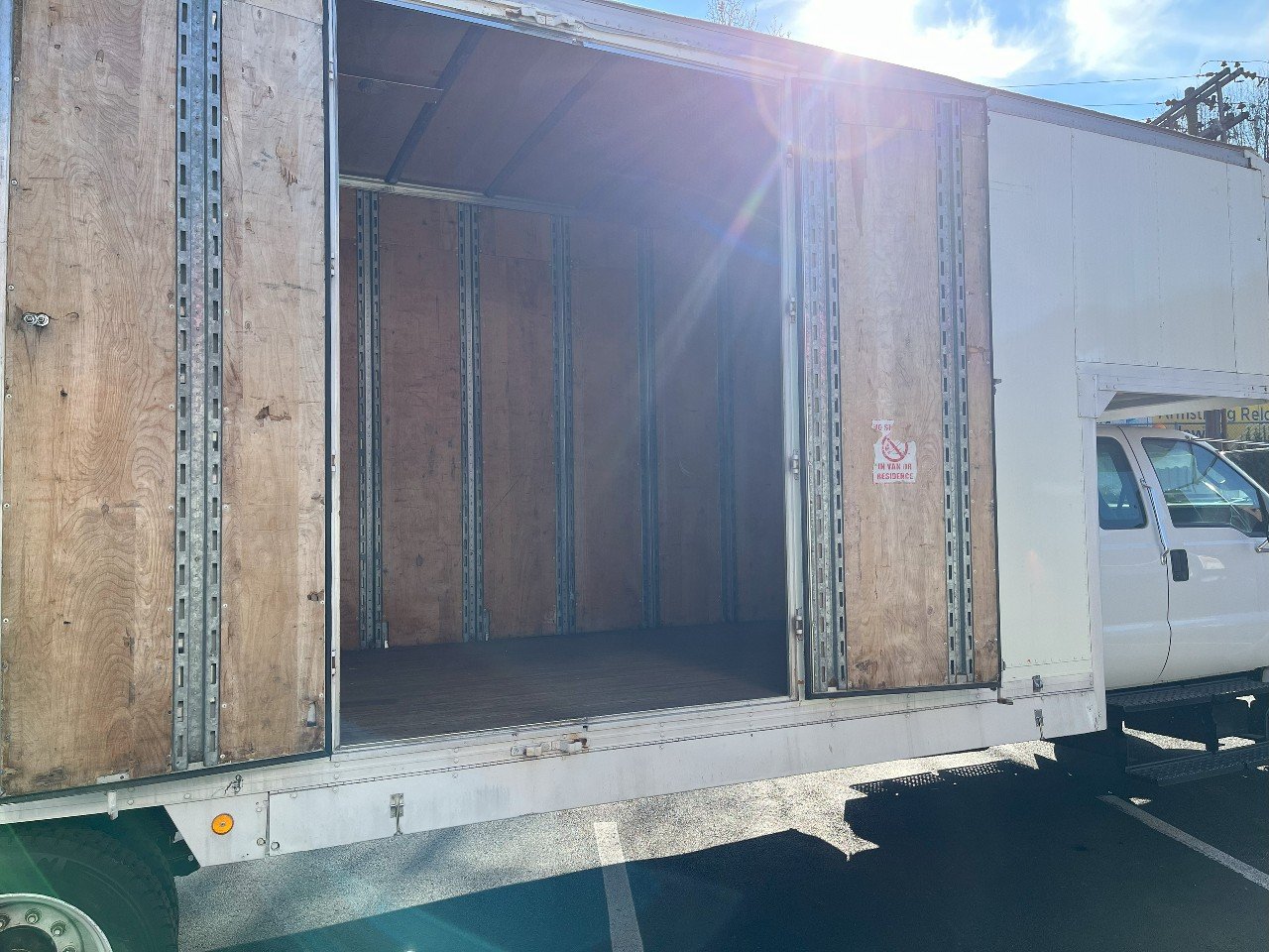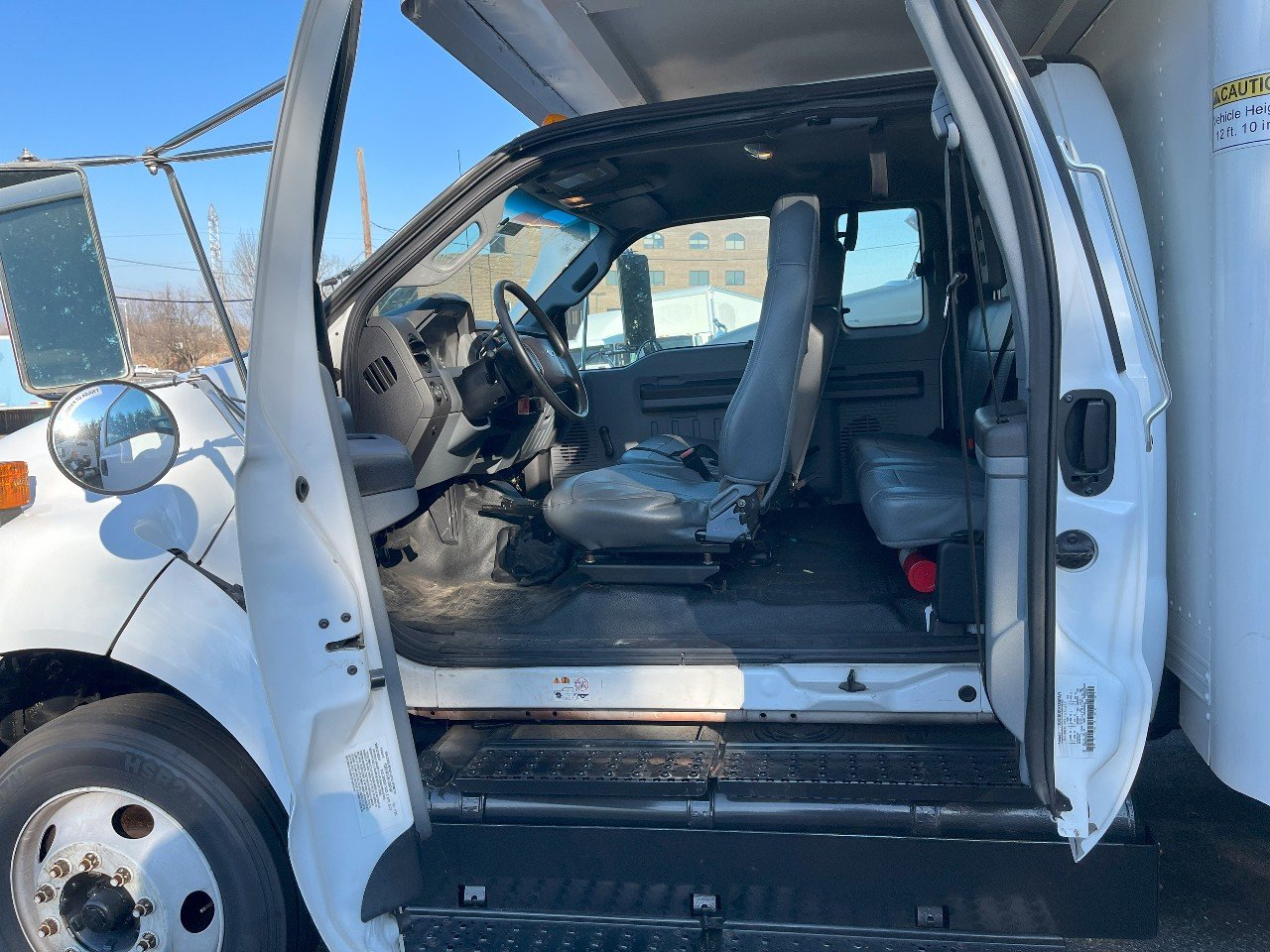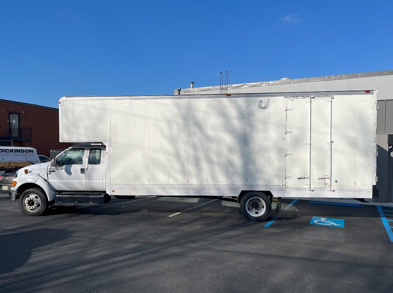 2013 FORD F650 XL SD, FORD V10 GASOLINE ENGINE, 26 FOOT VAN BODY WITH ATTIC, JUST UNDER 80K MILES, SWING DOORS – REAR – CURB SIDE – STREET SIDE, PLYWOOD LINED, NO CDL REQUIRED, EXTENDED CAB, REAR SEAT, AIR CONDITIONING, CRUISE CONTROL, AND MORE………….