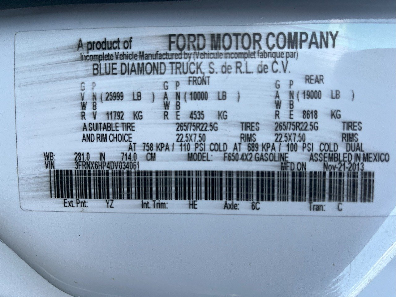 | Mileage: 79842 | GVW: 25999 |