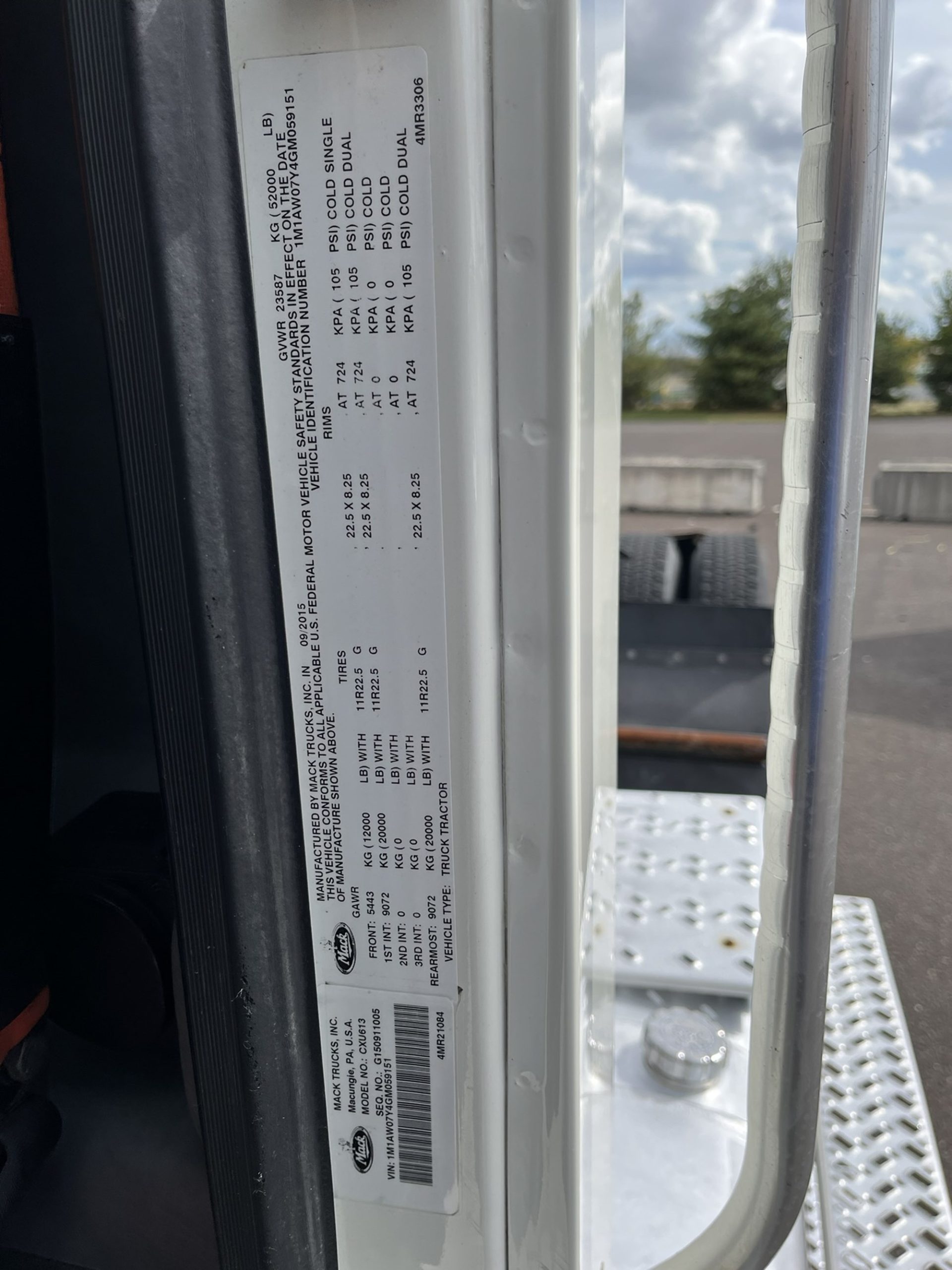 Engine Type: MP8 | VIN: 1M1AW07Y4GM059151 |