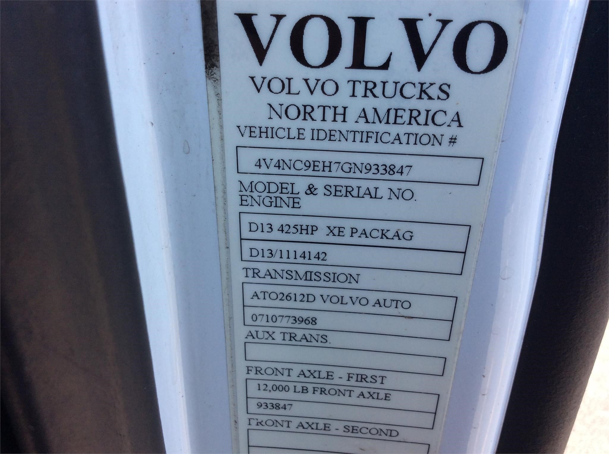 2016 VOLVO VNL64T T/A DAY CAB ENGINE D13 425 HP TRANS VOLVO I SHIFT 12 SP AUTOMATIC RATIO 2.64 ENGINE BRAKE POWER WINDOWS AND MIRRORS 12K FRT 40K REARS ON AIR LP22.5 ALL ALUM WHEELS VERY CLEAN TRUCK READY FOR WORK