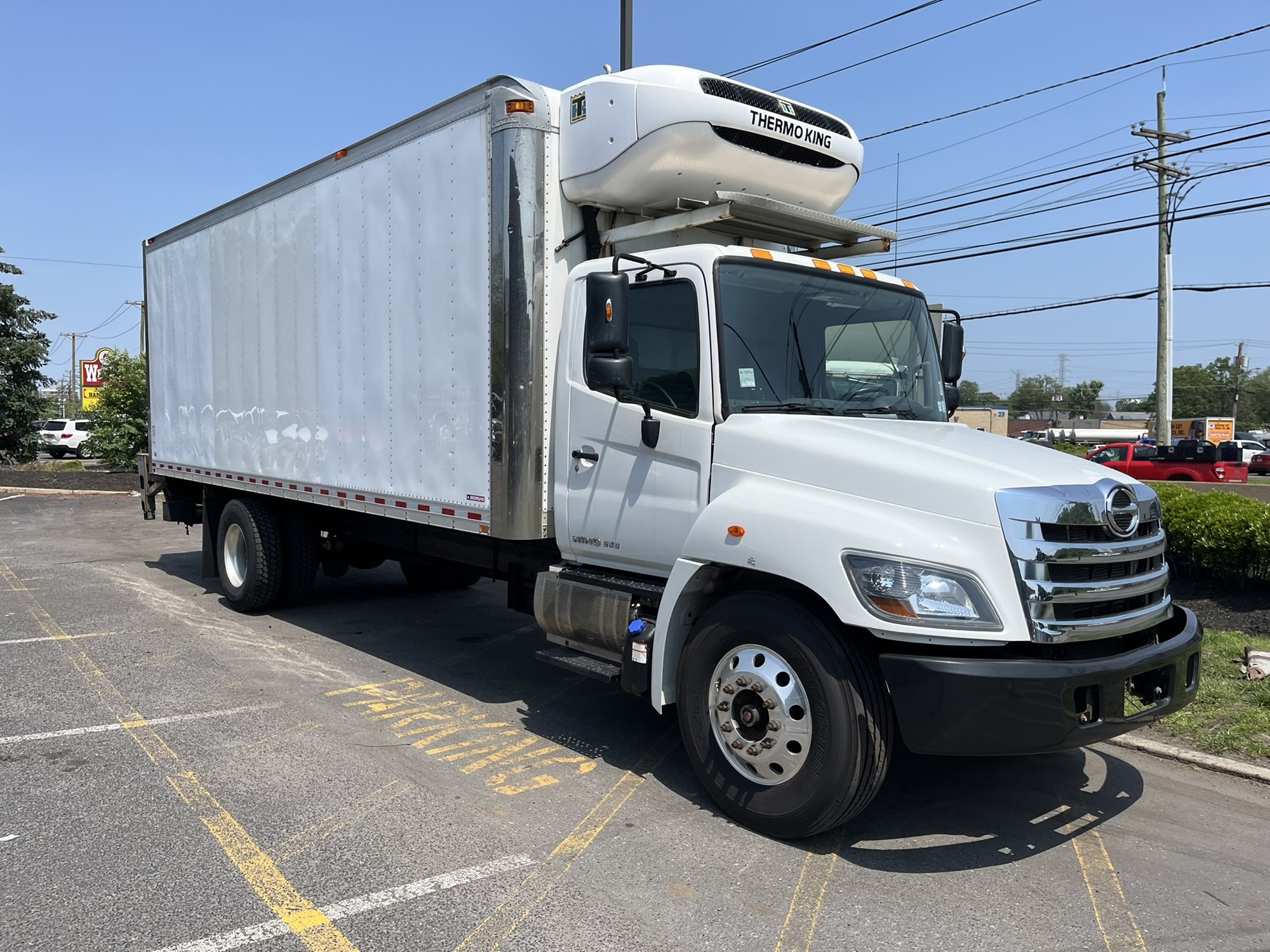 2018 HINO 268A 26′ REEFER TRUCK, ONLY 101k MILES, 25950 GVW, AUTO TRANS, AIR RIDE, THERMO KING T0880R, FLAT FLOOR , AC, CRUISE, PWR WIN/LOC, HINO DSL @ 260HP