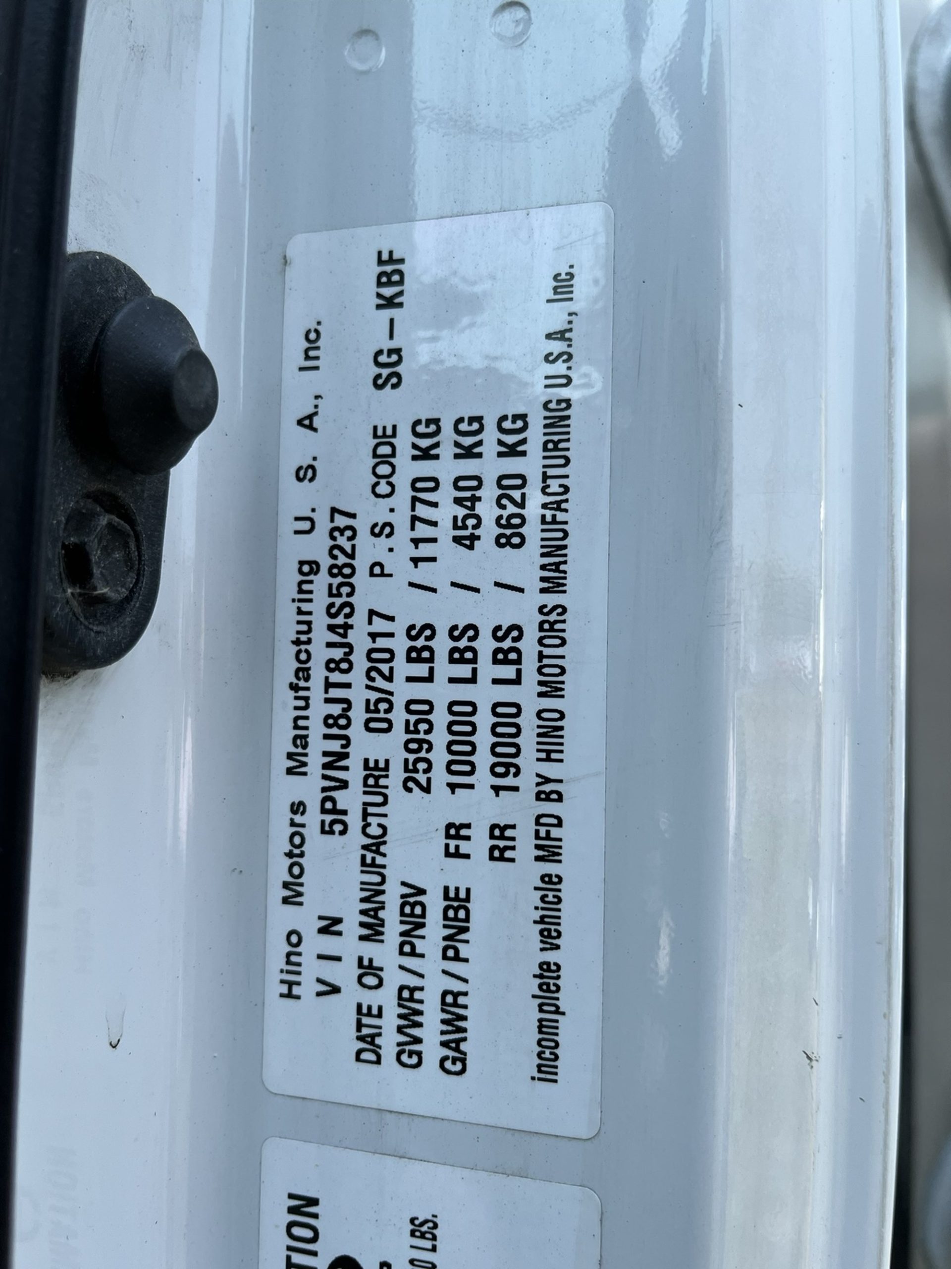 Color: WhiteRear Axle lbs: 19000